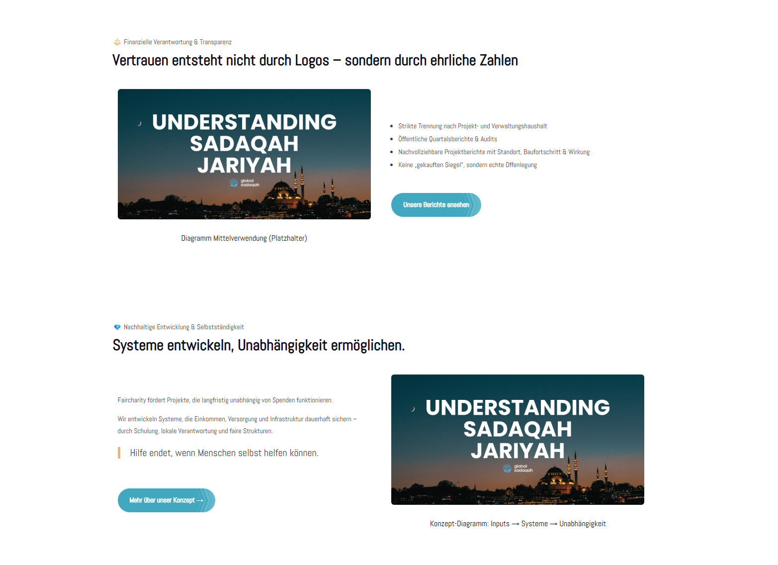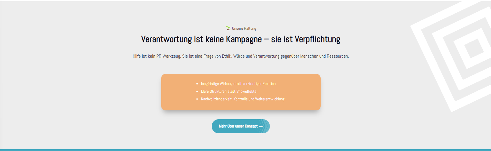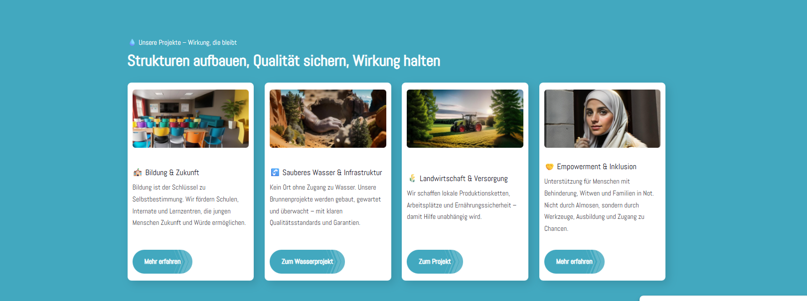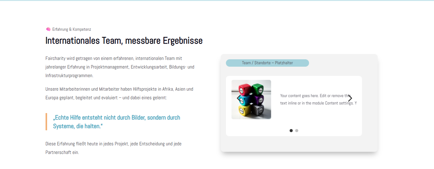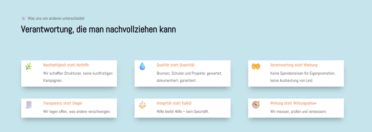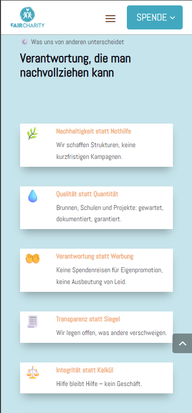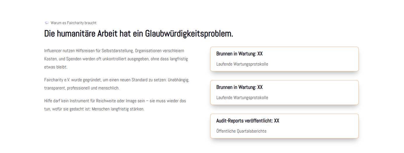 The idea is quite cool with the audit reports, wells under maintenance, etc. But that should be removed for now. Instead, you could add a ‘Learn more’ button here that leads to one of the ‘About us – Our concept’ pages.